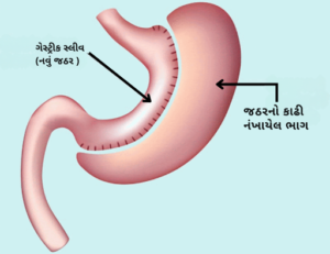 જઠરનો મોટો ભાગ કાઢીને એક નાનું, સ્લીવ આકારનું પાઉચ બનાવવામાં આવે છે, જે દર્દીઓને ઓછું ખાવામાં અને વજન ઘટાડવામાં મદદ કરે છે.